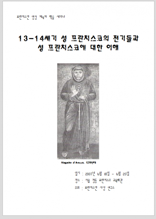 주제 : “13-14세기 성 프란치스코의 전기들과 성 프란치스코에 대한 이해”