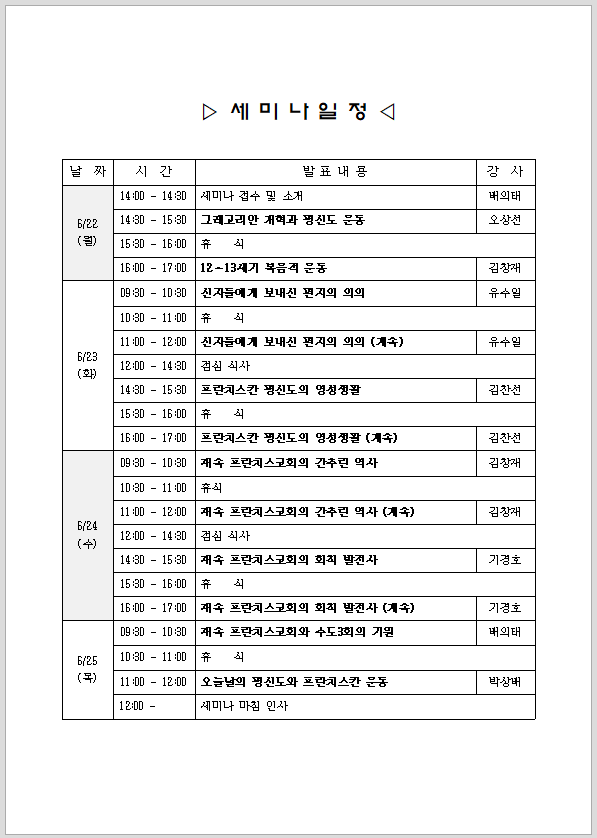 제6차 프란치스칸 영성 학술 발표회 > 영성 학술 발표회-원본