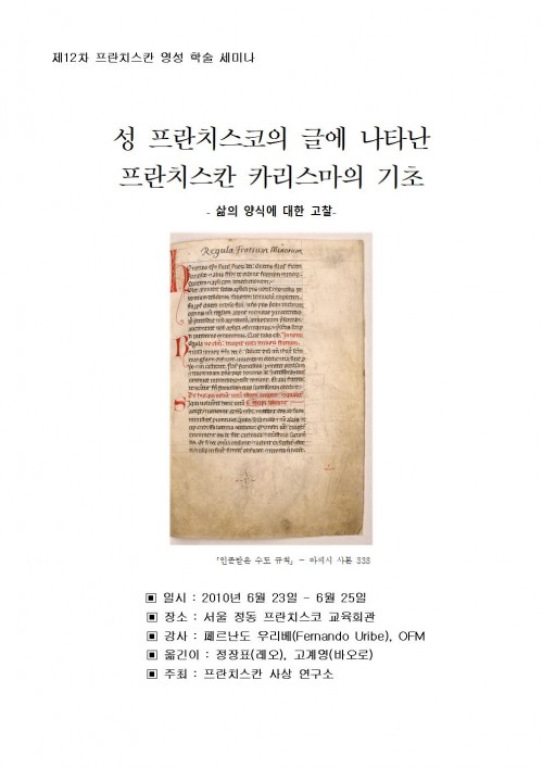 주제 : “13-14세기 성 프란치스코의 전기들과 성 프란치스코에 대한 이해”