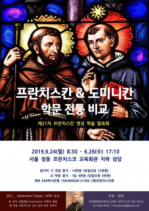로마 안토니아눔 대학에서 오랫동안 프란치스칸과 도미니칸 지적 전통의 비교를 가르치셨던 요한네스 프라이어 Johannes Freyer. OFM 형제님을 모시고 도미니칸과 프란치스칸 신학의 공통점과 차이점에 대해 궁금했던 지적 갈등을 풀어줄 소중한 시간이 되리라 생각합니다.